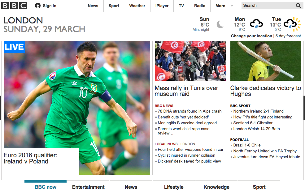 In the example below, the BBC uses a color bar to indicate which section’s link is in focus.