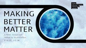 Join us at the Bioforcetech headquarters as we discuss the future of #biomaterials in the Bay Area. Presented as part of San Francisco Design Week, Making Better Matter brings together