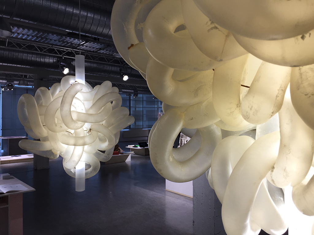 “It was an amazing experience to visit Dutch Design Week. My favorite project was Inside Out by Katherine Barbo Bendixen from Design Academy Eindhoven. She made an installation of 50 meters of cleaned, inflated intestines from a single cow. As the air escapes from the lamp over time it will expire, just like the cow whose body made it. I like this piece because it is gorgeous, unexpected and temporary. It offers contemplation on the hidden beauty within these animals that humans process and discard.”
